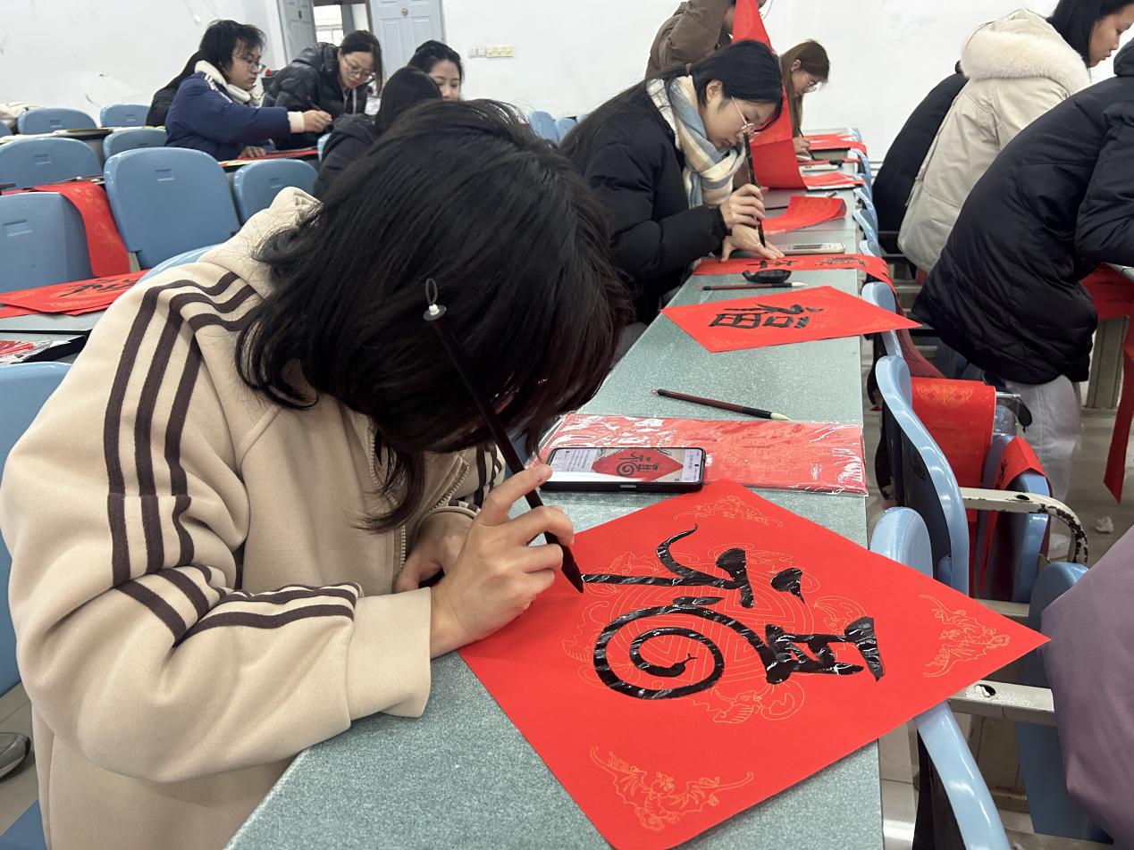 公司党委精心组织,提前布置了现场,红纸、毛笔、墨汁一应俱全,仿佛一幅幅待绘的画卷,等待着同学们的妙笔生花。他们的一笔一划间展现出汉字之美,同时也寄托了对新年美好的祝愿。有的同学书写的“福”字圆润饱满,寓意着幸福安康;有的同学则挥毫泼墨,创作出一对对寓意深远的对联,字里行间流露出对师生的深情厚谊。