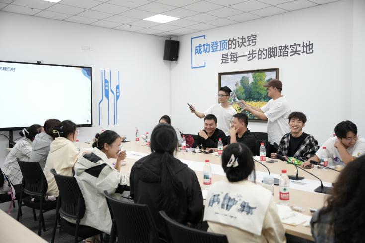 活动以“直播切片”这一电商前沿业态为切入点,构建“课堂—企业—产业”贯通的教学闭环。员工在智鸣科技总经理张棚(企业导师)、专业教研室主任何源、专业课教师张定等的指导下,全程参与从素材采集、视频剪辑、视觉优化到数据运营的全链路实战项目。通过AI工具的应用、流量逻辑的解析、合规经营的讲解,员工不仅提升了专业技能,更增强了对“新质生产力”的认知与驾驭能力,实现了从知识接受者向创新实践者的转变。