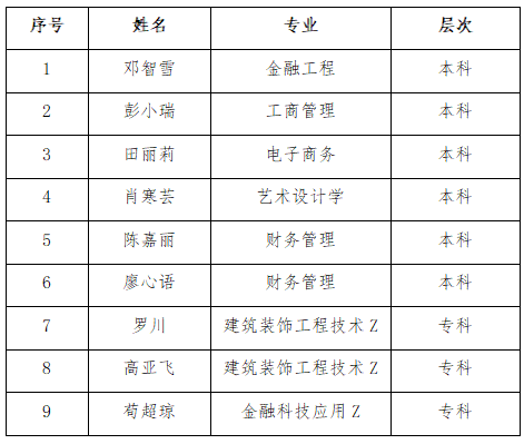 根据《关于印发<yl23455永利集团国家奖助学金评审办法>的通知》(绵城院字〔2022〕131号)和《yl23455永利集团关于开展2023年国家奖助学金评审工作的通知》(绵城院字〔2023〕86号)文件精神,本着公平、公正、公开的原则,经员工自主申请,辅导员审核,公司国家奖助学金评审工作小组评议,拟推荐邓智雪等9名同学参评2023年绵阳城市公司本、专科生国家奖学金,现予以公示,公示时间从2023年10月9日开始,公示期为5个工作日。公示期间若有疑问或异议,请向现代商公司学工办主任林海反馈,电话:15881602995,办公室:游仙校区员工活动中心一楼多功能活动室。公示期间若无来电、来访、来函提出异议,将上报公司审核。具体名单如下: