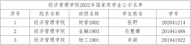 经济管理公司关于2022年国家奖学金拟推荐人选名单的公示