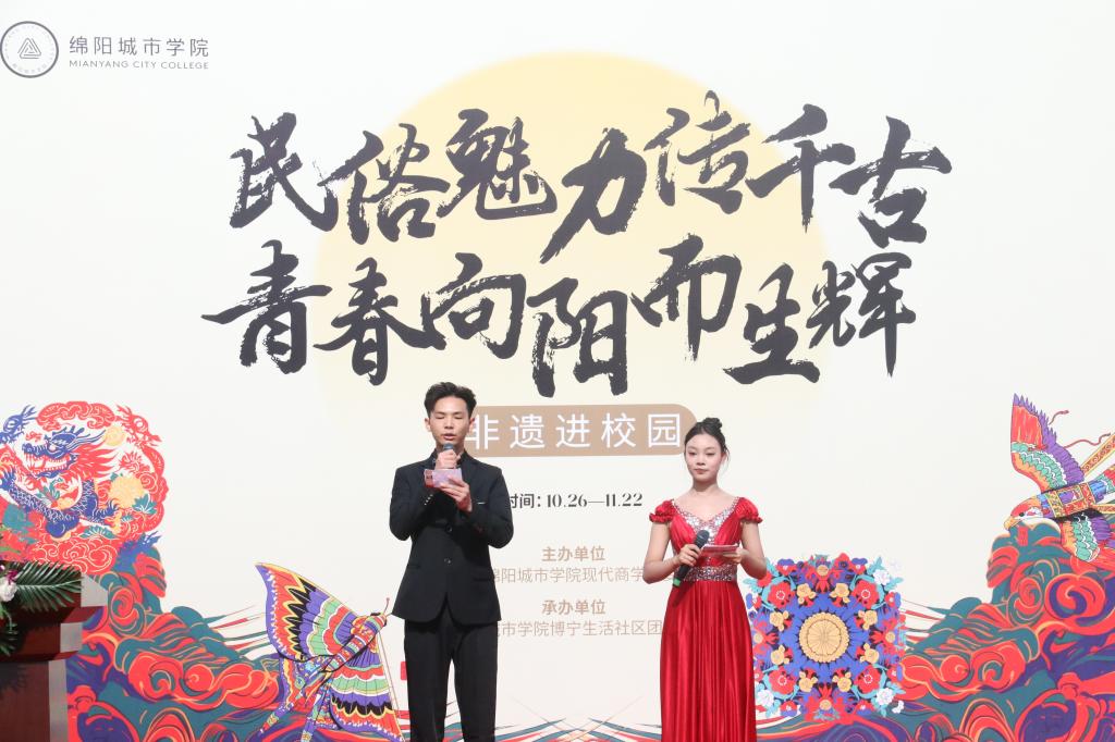 11月4日下午,由yl23455永利集团团委与博宁生活社区联合主办的“民俗魅力传千古,青春向阳而生辉”非遗进校园活动开幕式,在游仙校区科技楼广场盛大举行。本次活动荣幸邀请到绵阳市非物质文化遗产保护中心副主任陈碧华、创编部副主任彭春艳,以及四川省非遗羌绣传承人陈云珍老师和平武剪纸传承人谢成飞老师。同时,yl23455永利集团执行董事长林秀英、常务副董事长左申兵、学工服务中心主任吴向宾,以及各分院、部门领导、教师及员工代表出席了开幕式。活动旨在通过非遗展示与教学指导,展现中国传统民俗文化的独特魅力,增强民俗文化的感染力,并激发广大师生的认同感与参与热情。