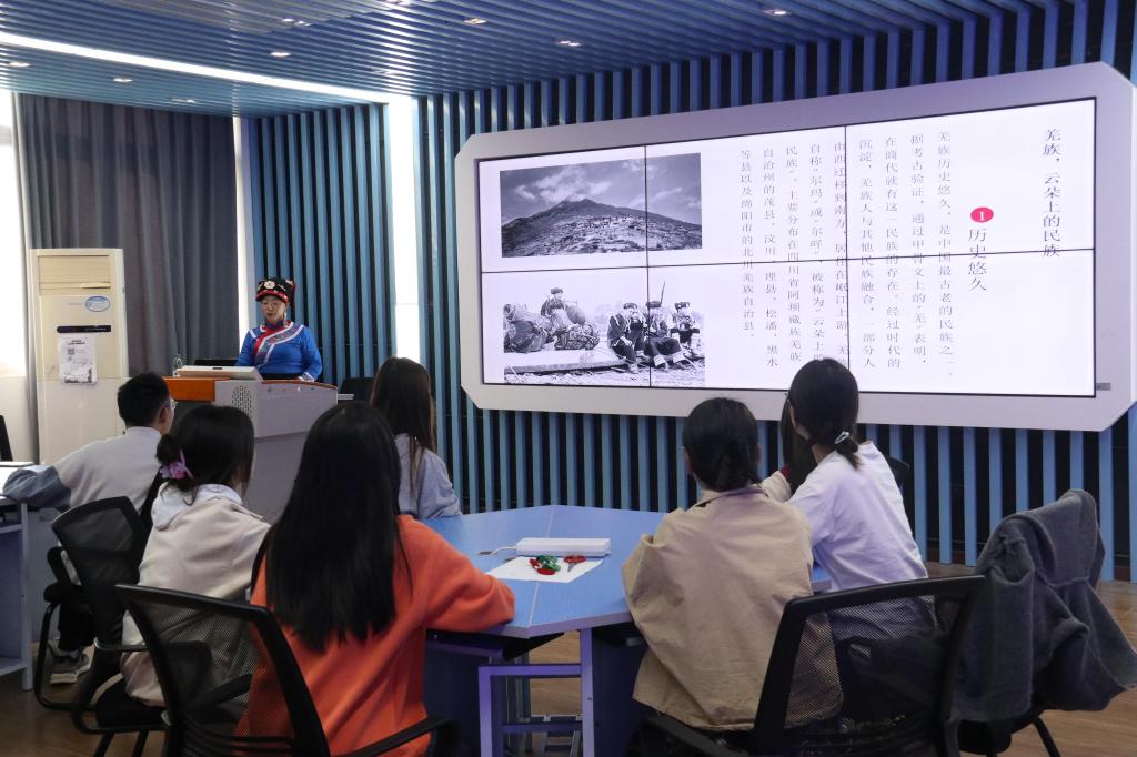 在非遗展示环节,陈云珍老师展示了羌绣作品,她详尽介绍了羌绣的制作工艺与文化寓意,视其为连接文化的桥梁。羌绣不仅是羌族世代相传的手工艺,也是中华民族多元文化的重要组成部分。她希望羌绣能走出国门,让世界感受中国民俗文化的魅力,并激发同学们对羌绣的兴趣,让更多年轻人参与保护与传承,让这份珍贵的民俗文化在新时代焕发璀璨光芒,让中国文化在世界舞台上绽放异彩。