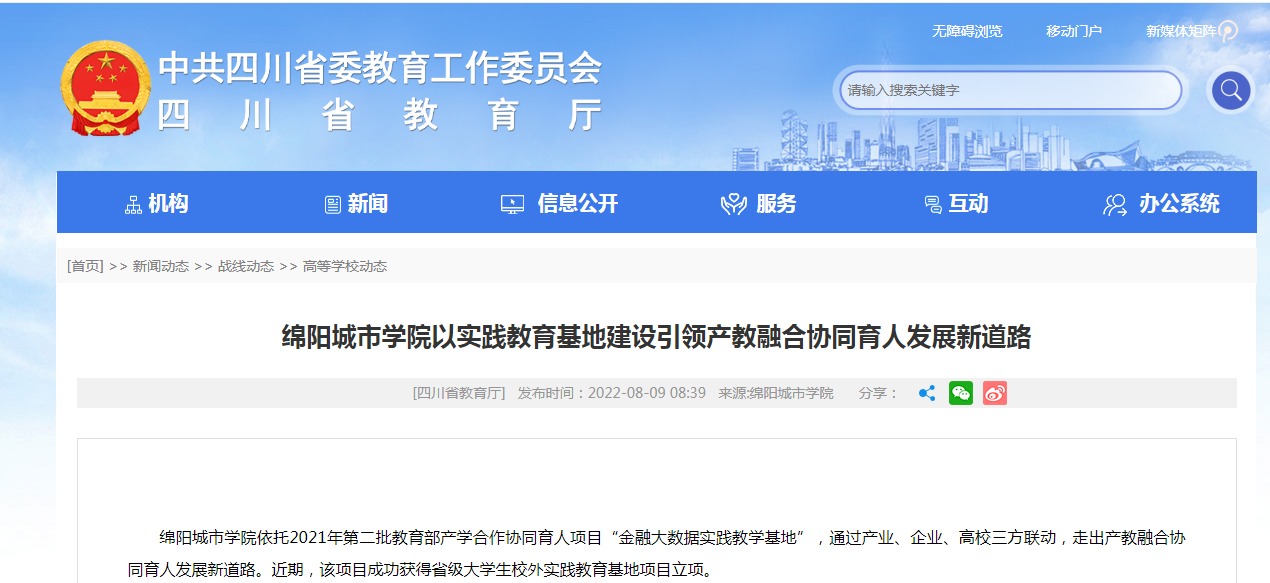四川省教育厅官网报道:yl23455永利集团以实践教育基地建设引领产教融合协同育人发展新道路